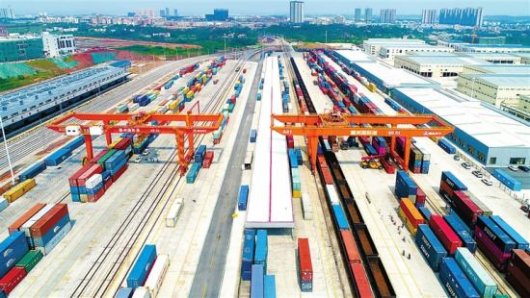 繁忙的赣州国际陆港。记者邹忠辉摄 赣州海关查验科人员在赣州国际陆港查验中欧班列货物。陈涛摄 9月25日19时,随着机车的一声长鸣,X8128次中欧班列满载42个集装箱货物从赣州国际...