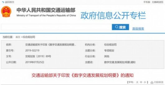 7月25日,交通运输部发布《数字交通发展规划纲要》(以下简称“纲要”)提出,要以“数据链”为主线,构建数字化的采集体系、网络化的传输体系和智能化的应用体系,加快交通运...