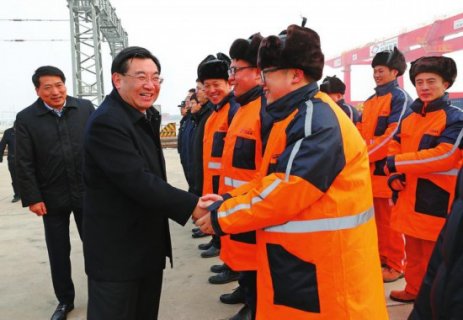 二月十一日,省委书记胡和平在西安市调研枢纽经济、门户经济、流动经济发展情况。图为他在西安铁路集装箱中心站慰问春节期间坚守一线的中欧班列长安号工作人员。记者 宋红梅摄...